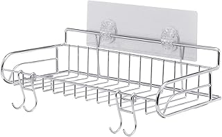 HBlife シャワーキャディ バスルームオーガナイザー ステンレススチール シャワーオーガナイザー フック4個付き 接着剤2個 ドリル収納ラック バスルーム キッチン シルバー