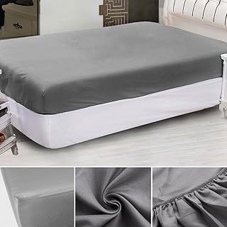 Yivoumi ボックスシーツ 綿100% セミダブル 毛玉なし ベッドシーツ マットレスカバー ベッドカバー 全周ゴム付き 洋式・和式兼用 マチ部分約25cm ベッド/マットレス/敷き布団対応 通気性 柔らか 吸汗 速乾 着脱簡単 抗菌防臭 防ダニ オールシーズン 快眠 丸洗い可能 (グレー, セミダブル・150X200cm)