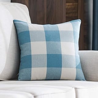 MIULEE クラシック レトロ チェッカー 格子柄 コットンリネン ソフト 無地 スカイブルーとホワイト 装飾クッションカバー ホームデコデザイン ソファ 寝室 車用 24 x 24インチ 60 x 60 cm