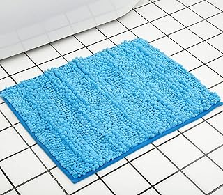 SHIMAKYO ソフトシャギーシェニールストライプ柄バスラグ 吸水性ノンスリップバスルームマット 42×24インチ 極厚バスルームカーペット ほこり吸収 洗濯機洗い可 速乾性 ベビーブルー
