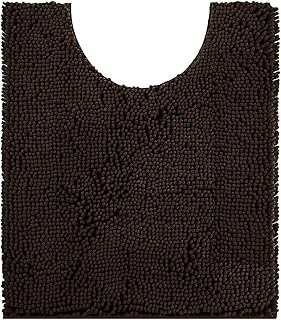 Smiry シェニールU字型トイレバスルームラグ ソフト 吸収性 ノンスリップ 曲線ラグ 洗濯機洗い可 トイレトイレ用トイレマット 20インチ x 24インチ コーヒー