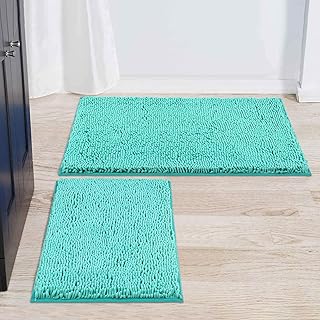 smiry バスルームラグとマットセット シェニールバスマット 2枚セット 洗濯機洗い可 滑り止め 吸収性 シャギーバスラグ 浴室 シャワー/浴槽用 (20インチ x 32インチ + 17インチ x 24インチ ターコイズ)