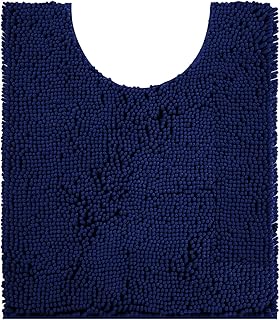 Smiry シェニールU字型トイレバスルームラグ ソフト 吸収性 ノンスリップ 曲線ラグ 洗濯機洗い可 トイレトイレ用トイレマット 20インチ x 24インチ ネイビー