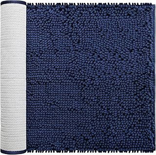 AmazerBath バスルームラグ シェニール織バスマット 滑り止め ソフトシャギー 超吸水性 洗濯機洗い可 シャワーラグ バスルームベッドルーム用 17 x 24インチ ネイビー