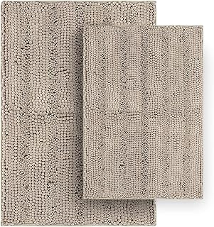 TAFTS ストライプシェニール織バスルームラグとマットセット ウルトラソフトシェニールマイクロファイバー吸水性 ノンスリップ 洗濯機洗い可 バスマット バスルーム/シャワーマット/浴槽/20インチ×32インチ&18インチ×24インチ ベージュ