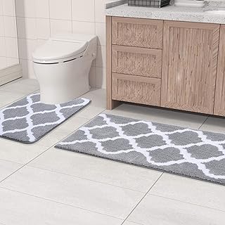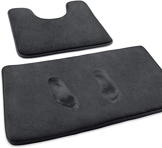 FEELSO メモリーフォームバスマットセット エクストラソフト 2ピース バスルームラグ 滑り止め 吸収性マット 20x31インチ フロアマット 20x20インチ U字型 浴槽 シャワー バスルーム用 グレー