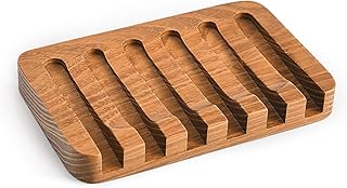 SUBEKYU バスルーム 木製 ソープディッシュ ナチュラルバー ソープホルダー 排水トレイ付き シャワー/バスルーム用 ウォーターフォール ドレイン ソープセーバー 1個 チーク材