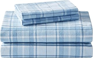 Friends at Home シーツ4点セット キングサイズ コットン100% ソフト 低刺激性 快適 ファジー寝具 ホテルコレクション 厚手 フランネル織 格子柄 ネイビー ブルー ホワイト