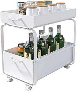 シンク下収納 キッチン収納 シンク下スライドラック 引き出し式収納 多機能のキッチン収納 スライド式 ステンレス棚 調味料/スパイス/ボトル収納 整理ラック 収納ラック 食器棚 食器収納 すきま収納 スライド式収納ラック (ホワイト)
