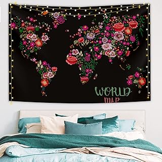 VePret カラフル 花柄 世界地図 壁タペストリー 寝室 ホーム 壁飾り用 (39.4x59.1インチ 100x150cm)