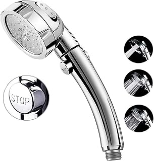 Marbrasse 高圧シャワーヘッド 3段階設定 手持ちシャワーヘッド オン/オフ フルシャットオフ プッシュボタンとスイッチで水流をコントロール、角度調節可能な節水ボディスプレー(クロム)