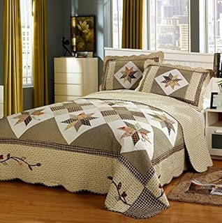 HNNSI コットン ラグジュアリー パッチワーク デザイン キルト ベッドスプレッド セット クイーンサイズ 3点 快適 掛け布団 ベッドカバー 寝具セット (スタイル1)