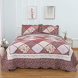 Autumn Dream リバーシブル パッチワーク ベッドスプレッド キルトセット 3ピース キルトベッドカバー セット 花柄 ファームハウス レッド ベッドスプレッド 掛け布団 クイーンサイズ
