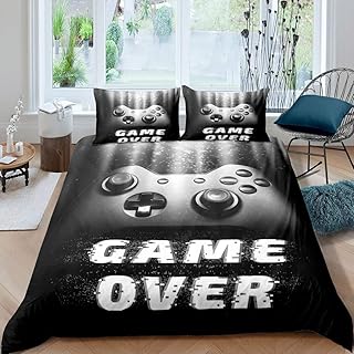 Feelyou ゲーム掛け布団カバー スパンコール ギャラクシー 寝具セット 子供 男の子 大人 ゲーマー ビデオゲーム ゲームパッド 掛け布団 カバー ノベルティ ゲームコントローラー キルトカバー 装飾 ベッドルームコレクション 3ピース クイーンサイズ ブラック