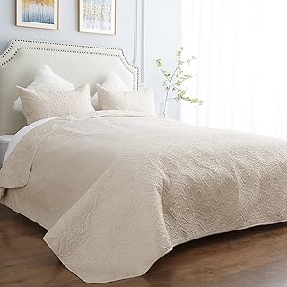 CHOSHOME ベッドカバー キルト寝具セット フル/クイーンサイズ お揃いの枕カバー2枚付き 3ピース マイクロファイバー リバーシブル 軽量 ソフト 掛け布団 90 x 96インチ ベージュ